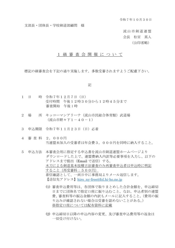 更新日:2025年10月31日 / 投稿日:2025年10月31日 秋季一級審査会の開催について(R7.12.7) 案内文書_HP掲載用 申込書原本 この部分にclear:both;を設定しています 一覧にもどる 各支部のご紹介