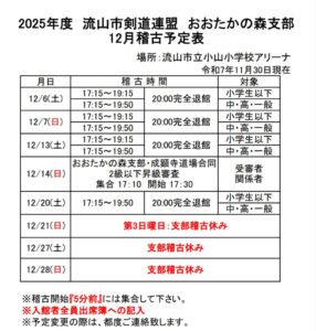 【おおたかの森支部】2025年12月の稽古予定