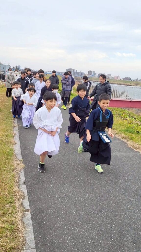 朝の冷え込む江戸川河川敷と体育館にて、元気に稽古を始めました。